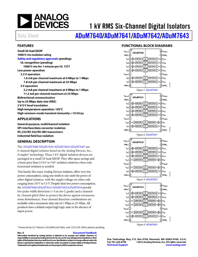 ADUM7643: 1 V RMS Six-Channel Digital Isolators (3/3 Channel Directionality)