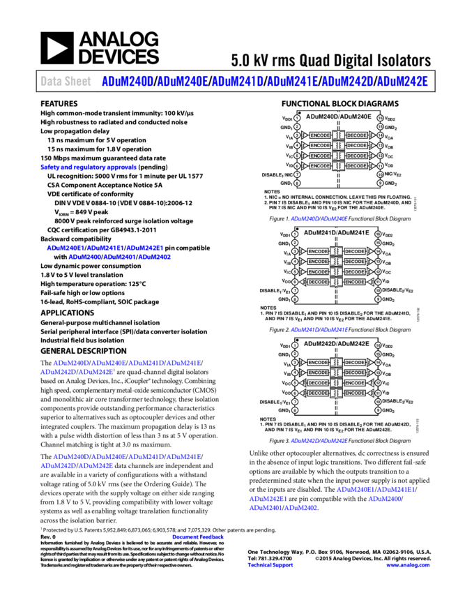 Robust 5kV RMS Quad Channel Digital Isolators, Input Disable (4/0 Channel Directionality)