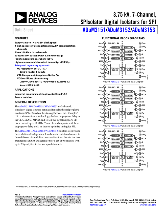 3.75 V, Dedicated Isolators for SPI Interfaces (with 2/1 Aux channel directionality)