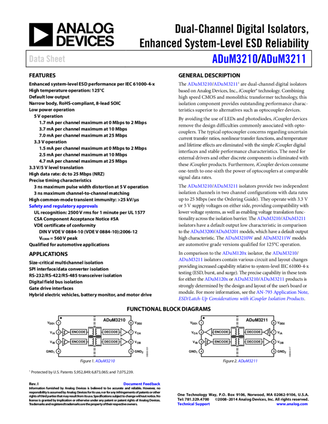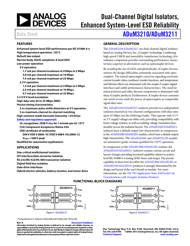 ADUM3211: Dual-Channel Digital Isolator, Enhanced System-Level ESD Reliability