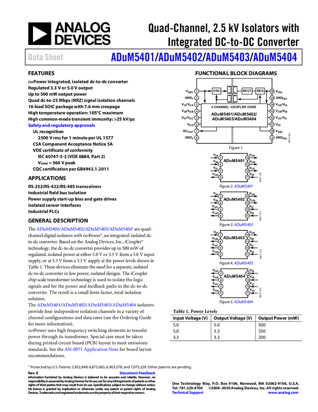 Quad-Channel, 2.5 kV Isolators with Integrated DC-to-DC Converter (0/4 channel directionality)