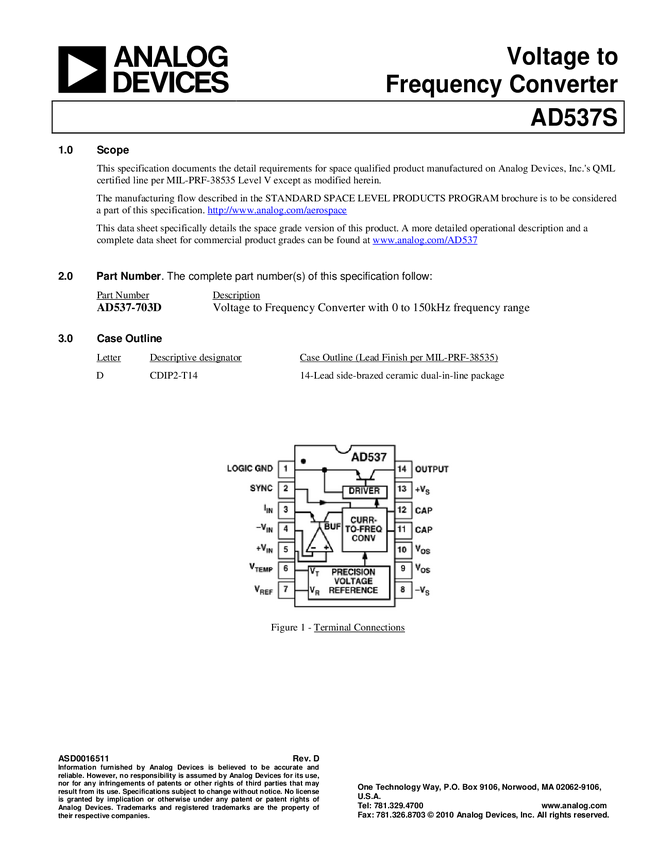 Aerospace Voltage to Frequency Converter, ±30V to 150kHz