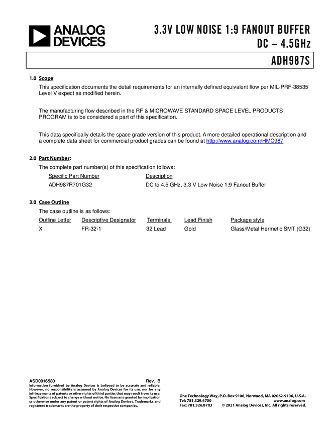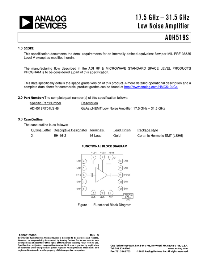 Aerospace Low Distortion Fully Differential RF/IF Amplifier