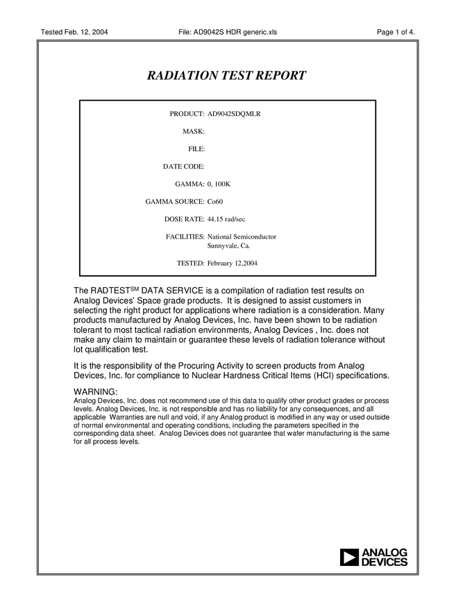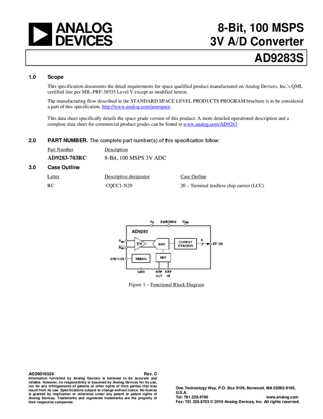 Aerospace 8-Bit, 100 MSPS Analog to Digital Converter