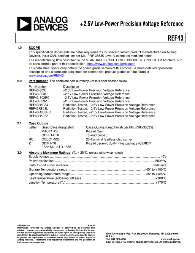 Aerospace +2.5V Low-Power Precision Voltage Reference