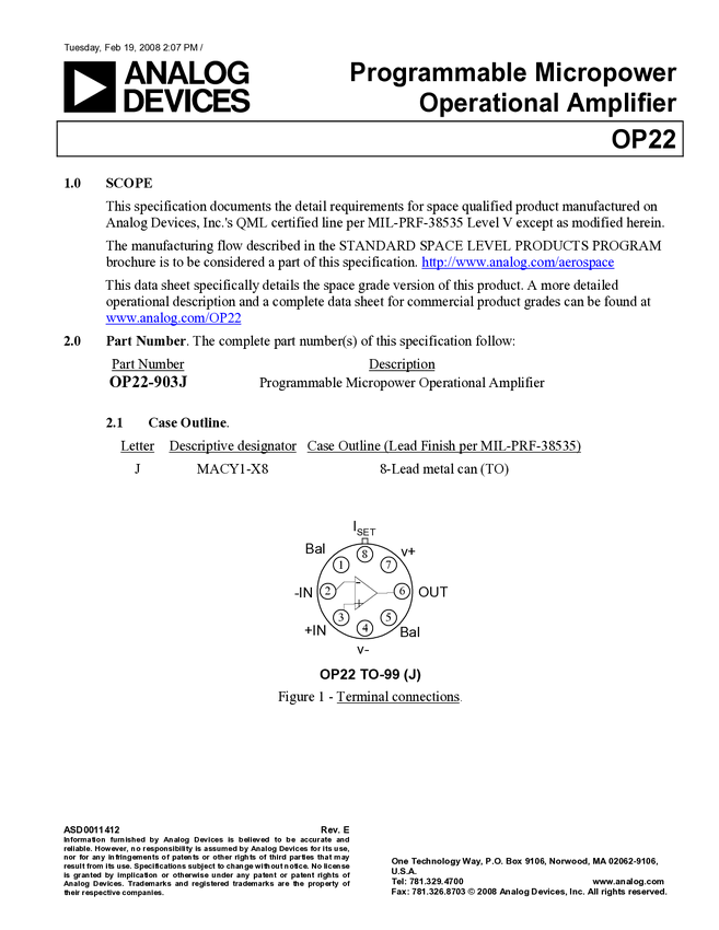 Aerospace Low Noise, Precision, Rail-to-Rail Output, JFET Dual Op Amp