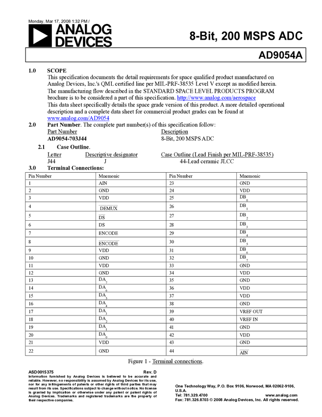 Aerospace 8-Bit, 200 MSPS MSPS A/D Converter