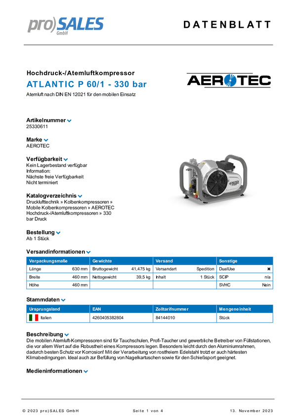 Sprężarka powietrza Aerotec 201401089 330 bar