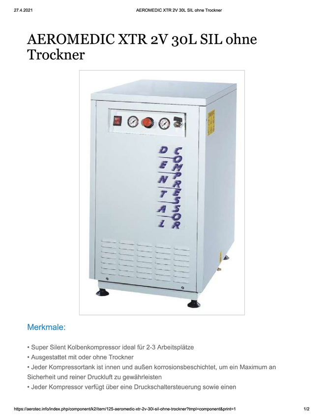 Sprężarka powietrza Aerotec AEROMEDIC XTR 2V-30L SILENT 8 bar