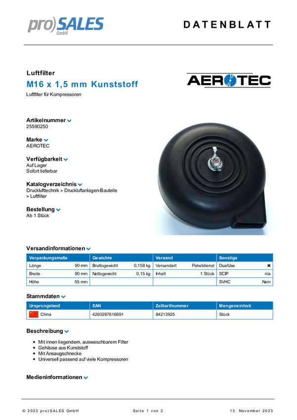 Aerotec 9411129 Filtr 1 szt.