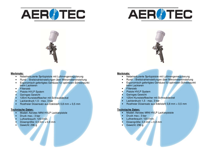 Pistolet natryskowy pneumatyczny Aerotec mini HVLP 2005700 3 bar