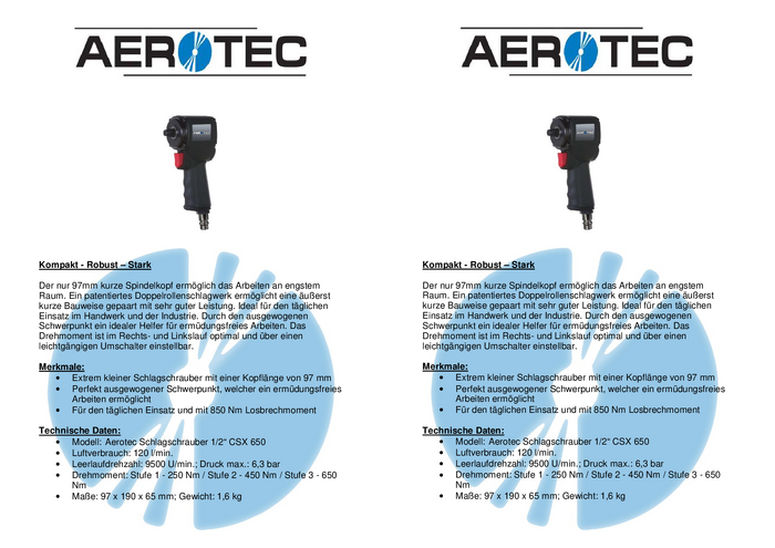 Klucz udarowy pneumatyczny Aerotec CSX650 2010148 650 Nm 6.3 bar