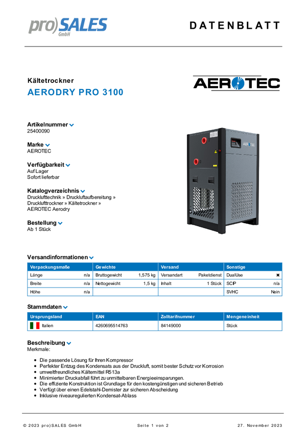 Osuszacz chłodniczy Aerotec 25400090 25400090, 1 szt.