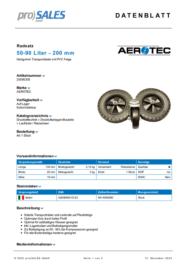 Aerotec 9420084 Zestaw kół do kompresora 1 szt.