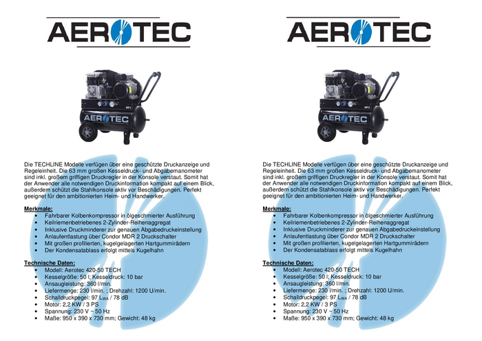 Sprężarka powietrza Aerotec 420-50 TECHLINE 10 bar