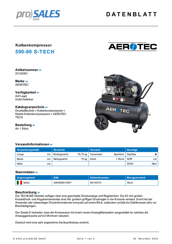 Sprężarka powietrza Aerotec 251200000 10 bar