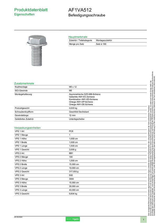 Śruba z łbem sześciokątnym Schneider Electric AF1VA512 100 szt.