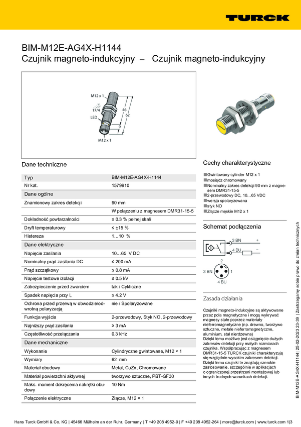 Turck Czujnik pola magnetycznego BIM-M12E-AG4X-H1144