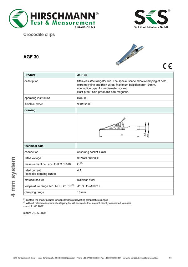 Mini zaciski szczękowe SKS Hirschmann AGF 30 930122000 Maksymalny zakres zacisku: 10 mm Długość: 49 mm srebrny 1 szt.
