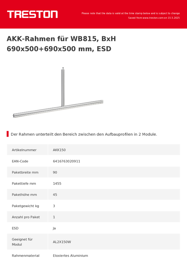 Treston AKK150 produkt uniwersalny Rama (szer. X wys.) 1500 mm x 500 mm 2.8 kg