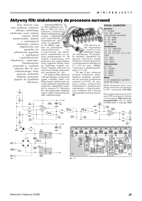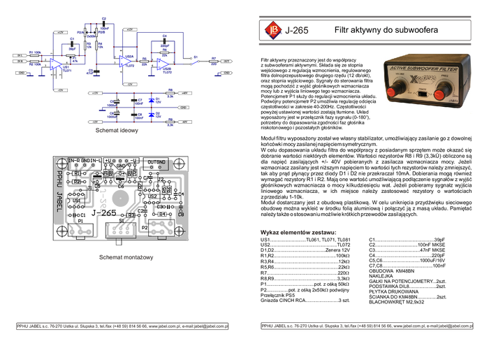 J-265 Aktywny filtr niskotonowy do subwoofera - zestaw do montażu