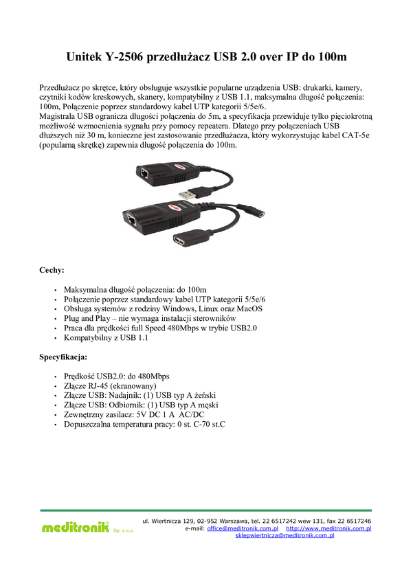 Aktywny przedłużacz repeater USB 1.1 po skrętce do 45m