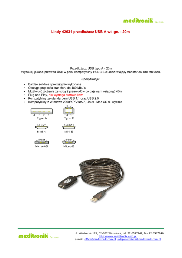 Aktywny przedłużacz repeater USB 2.0 po sktętce do 100m