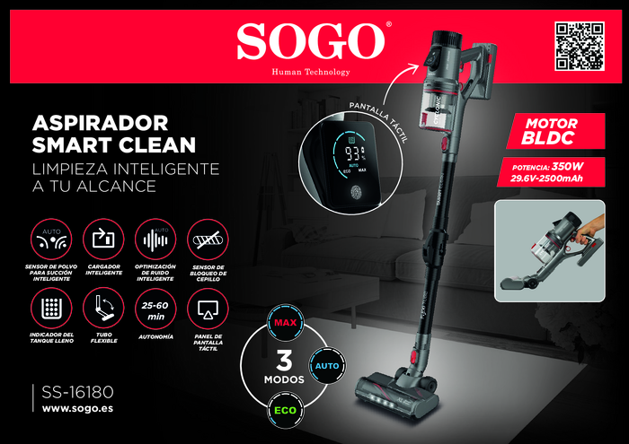 SOGO Human Technology Odkurzacz ręczny, akumulatorowy 29.6 V bezworkowy, z akumulatorem