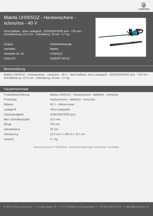 Makita UH005GZ akumulatorowy Nożyce do żywopłotu 40 V Li-Ion 750 mm