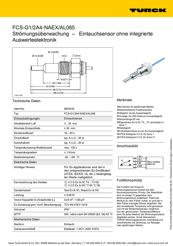 Turck Czujnik zanurzeniowy FCS-G1/2A4-NAEX0/AL065 6870346 1 szt.