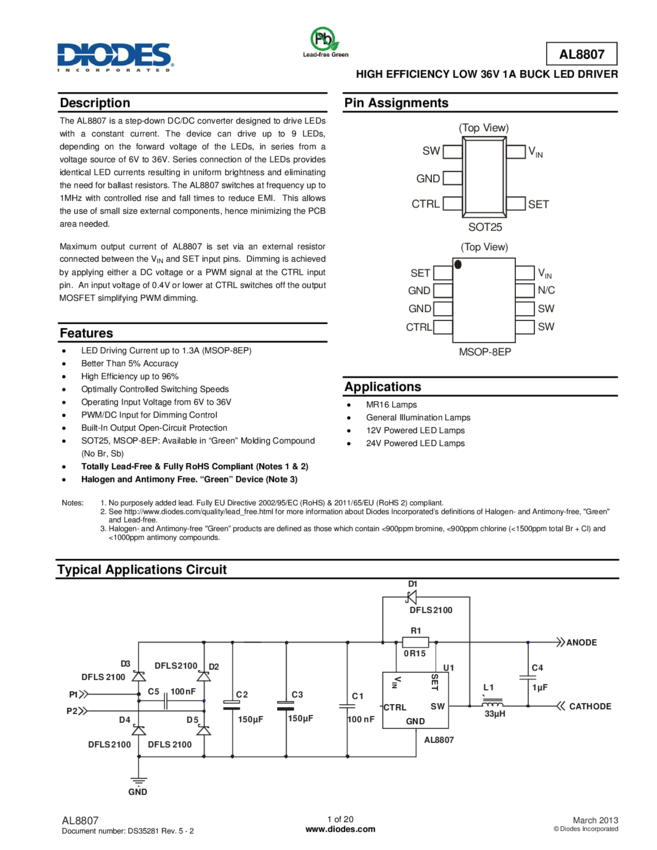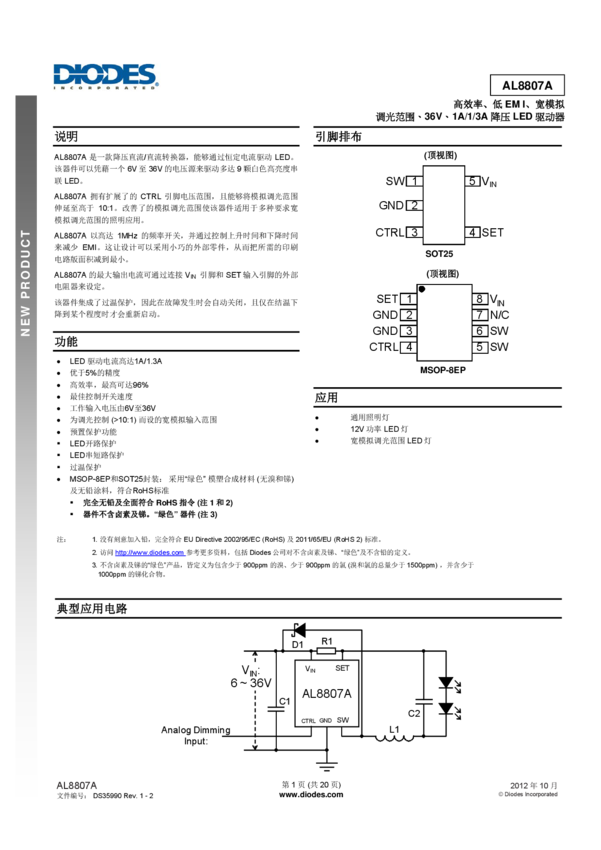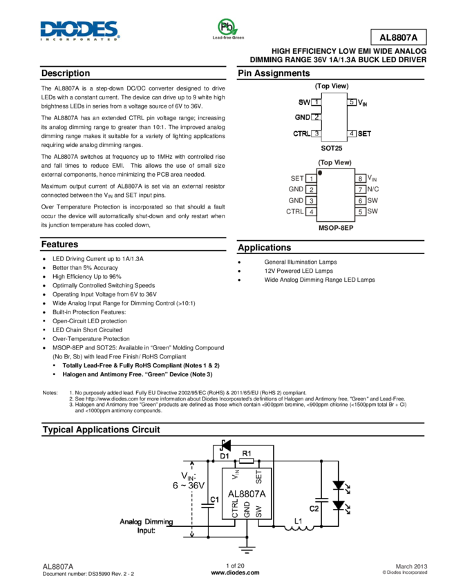 AUTOMOTIVE GRADE HIGH EFFICIENCY 36V 1.3A PWM DIMMABLE BUCK LED DRIVER