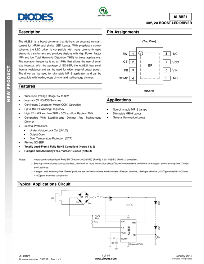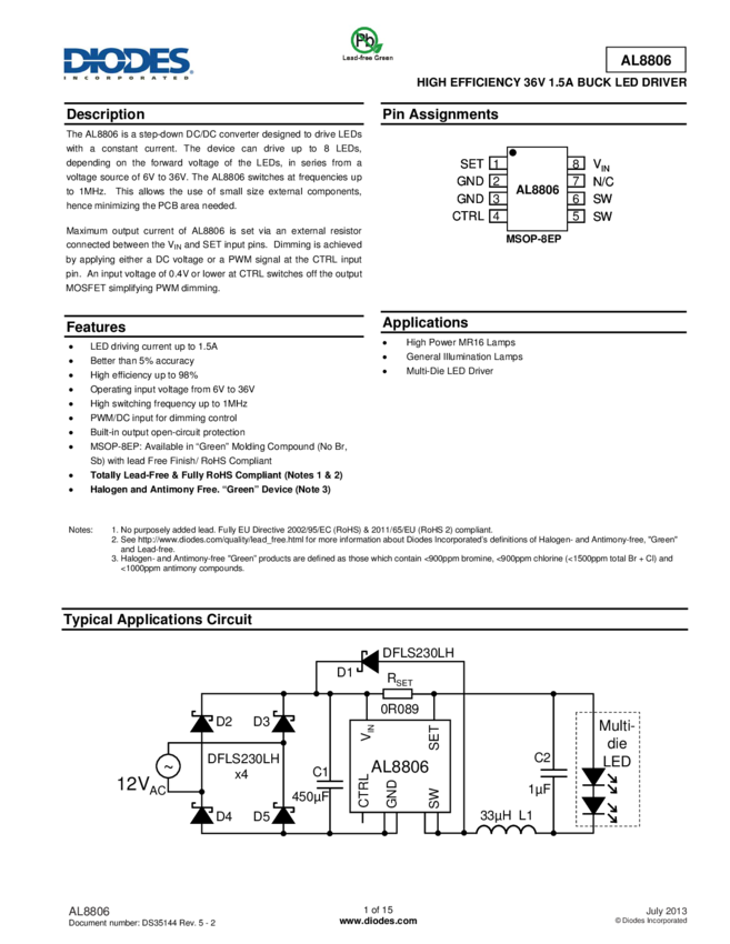 HIGH EFFICIENCY 36V 1.5A BUCK LED DRIVER