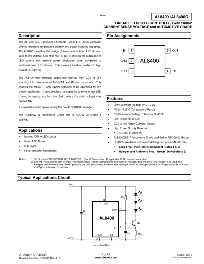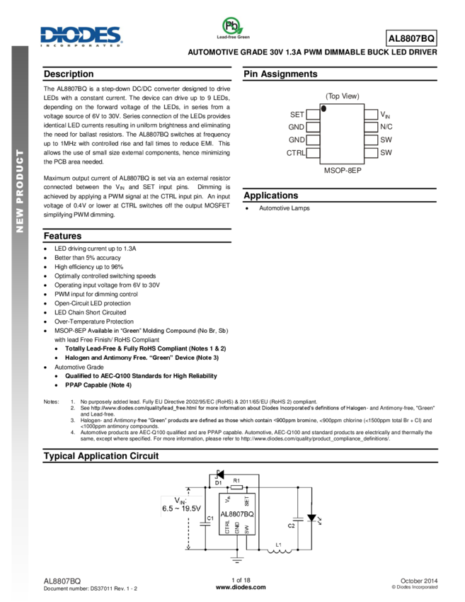 HIGH EFFICIENCY LOW 30V 1.3A AUTOMOTIVE GRADE BUCK LED DRIVER
