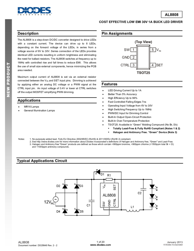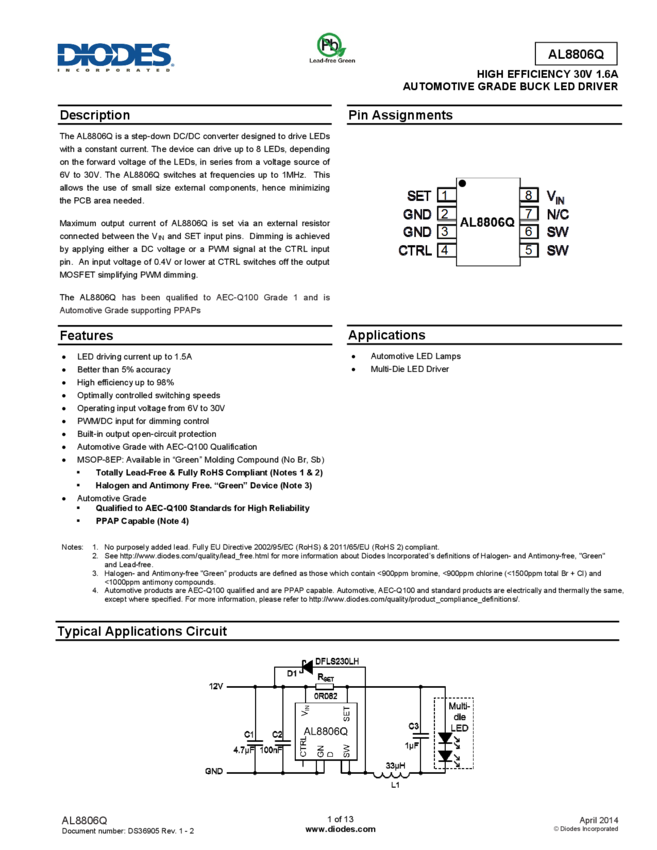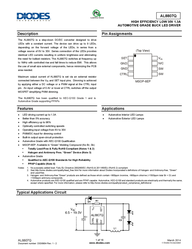HIGH EFFICIENCY 30V 1.6A AUTOMOTIVE GRADE BUCK LED DRIVER