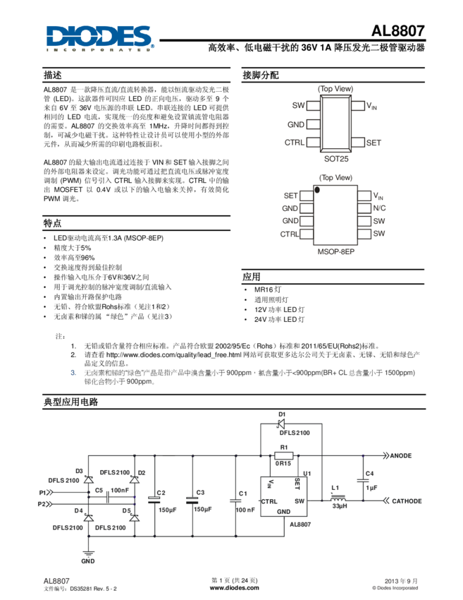 HIGH EFFICIENCY LOW EMI 36V 1A/1.3A BUCK LED DRIVER