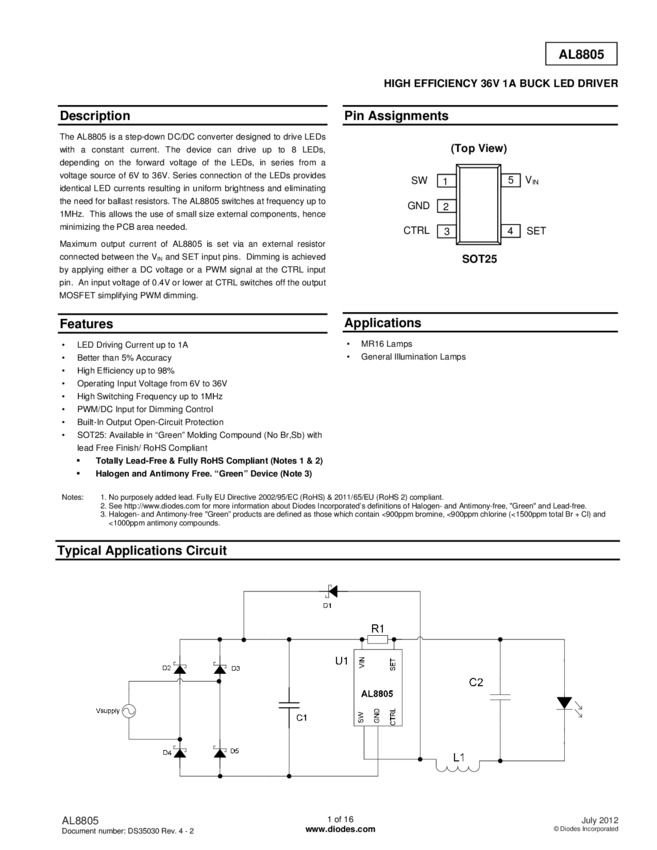 HIGH EFFICIENCY 36V 1A BUCK LED DRIVER