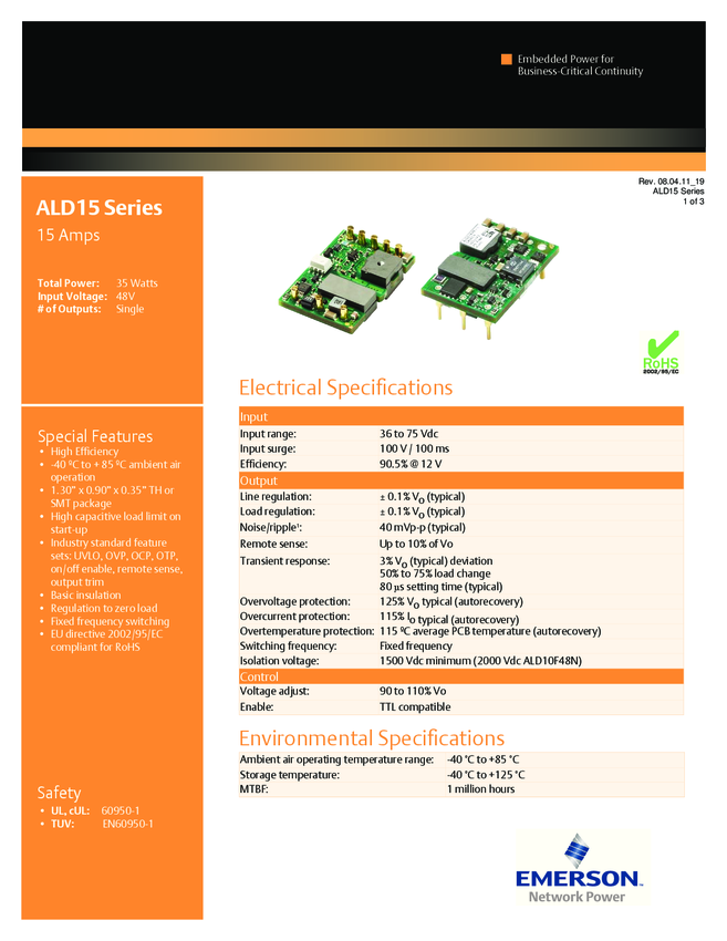 Module DC-DC 1-OUT 12V 2.75A 35W 8-Pin
