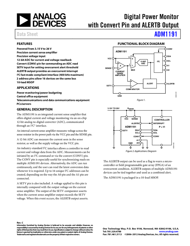 ADM1192: Digital Power Monitor with Clear Pin and ALERT Output