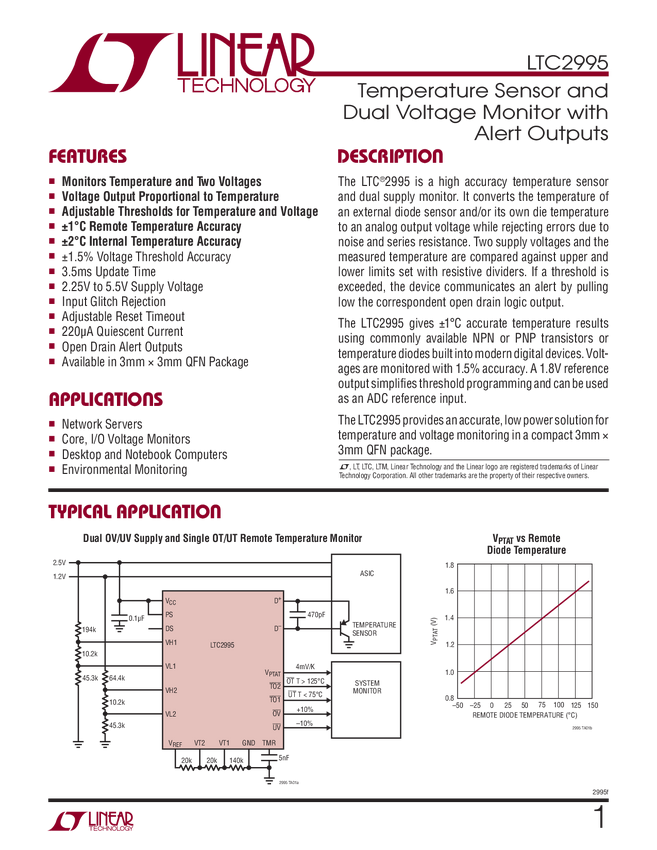 Temperature Sensor and Dual Voltage Monitor with Alert Outputs