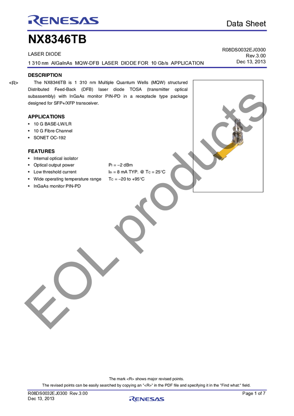 270/1 290/1 310/1 330/1 350 nm AlGaInAs MQW-DFB Laser Diode for 9.8Gbps CPRI, 10G Ethernet Application