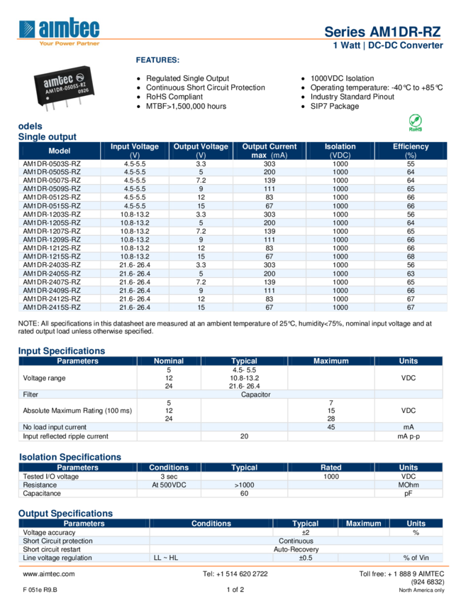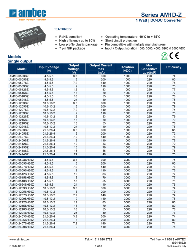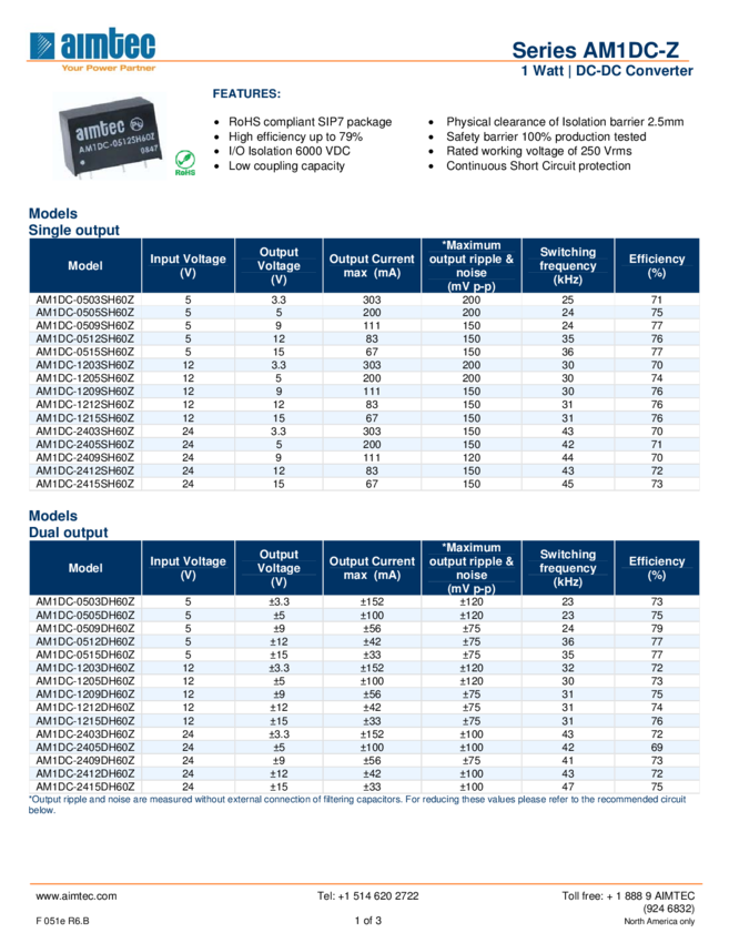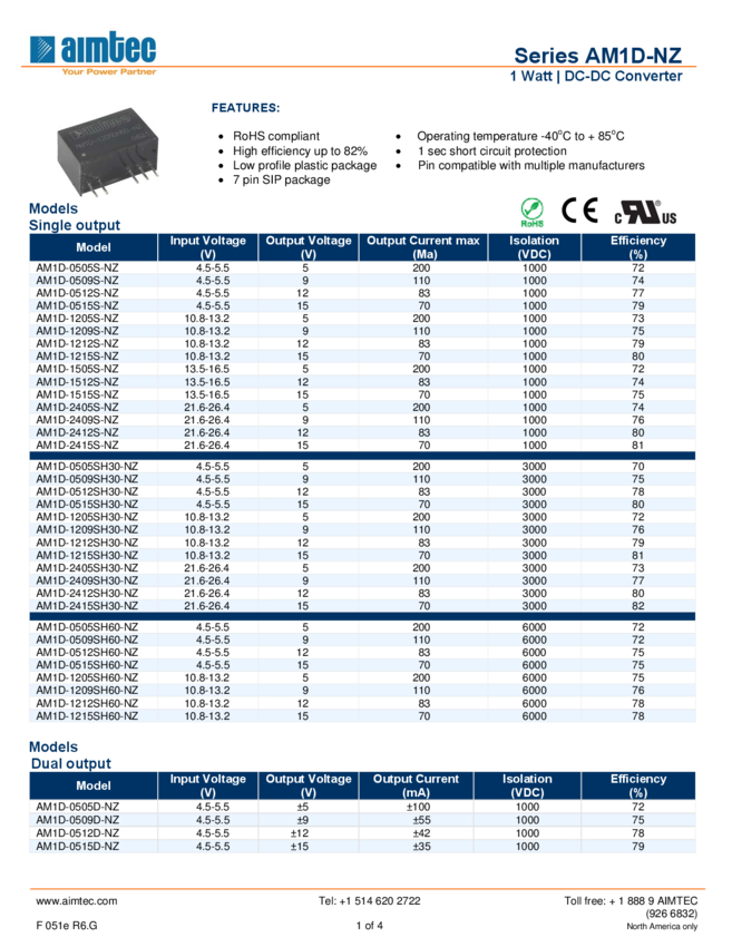 Przetwornik; DAE1-0513 / AM1D-0512SZ; DC/DC; 1W; Uwej: 4,5÷5,5V; 12VDC; Iwyj: 83mA; SIP7-4p ; 2,3g