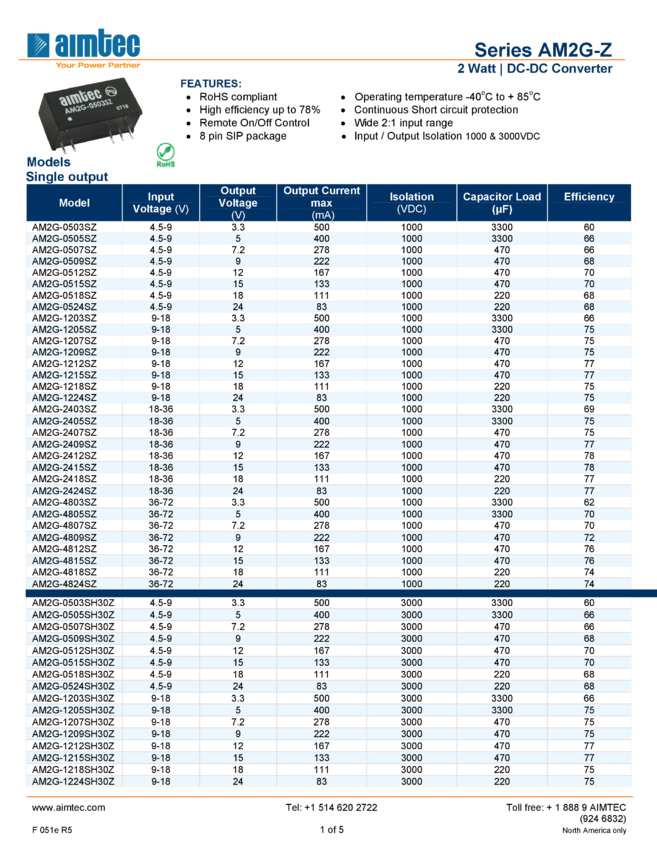 Module DC-DC 1-OUT 7.2V 0.27A 2W 4-Pin SIP