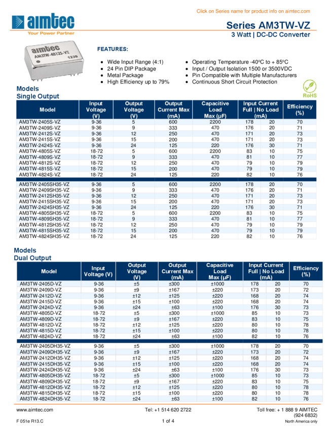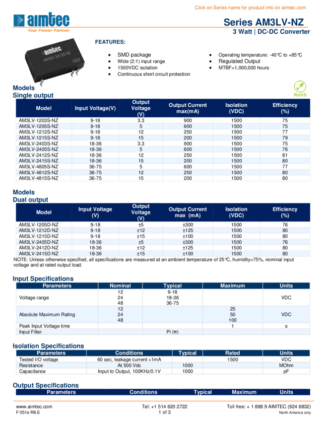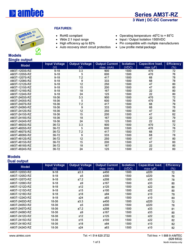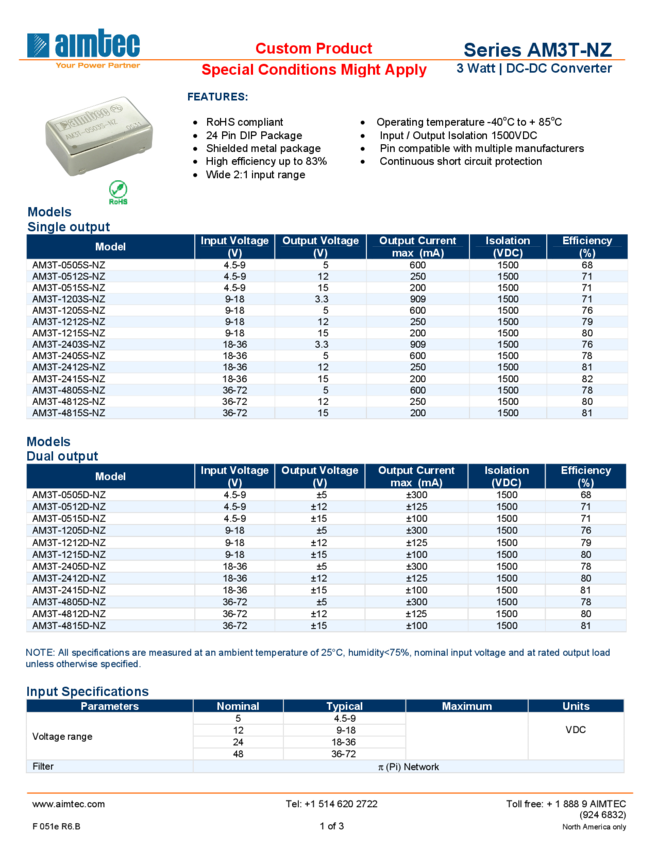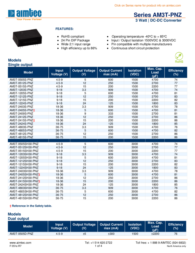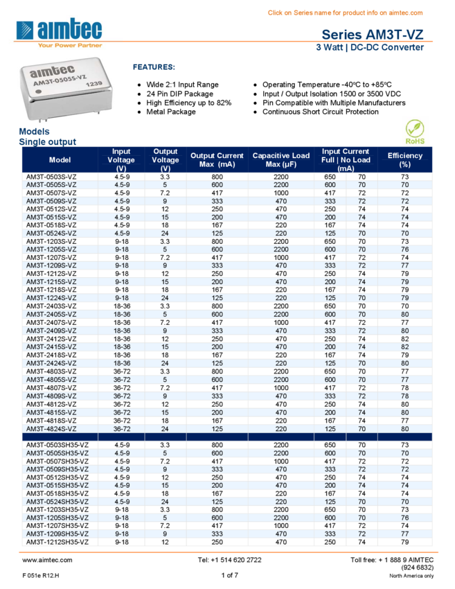 Module DC-DC Single-OUT 12V 0.25A 3W 7-Pin DIP Tube