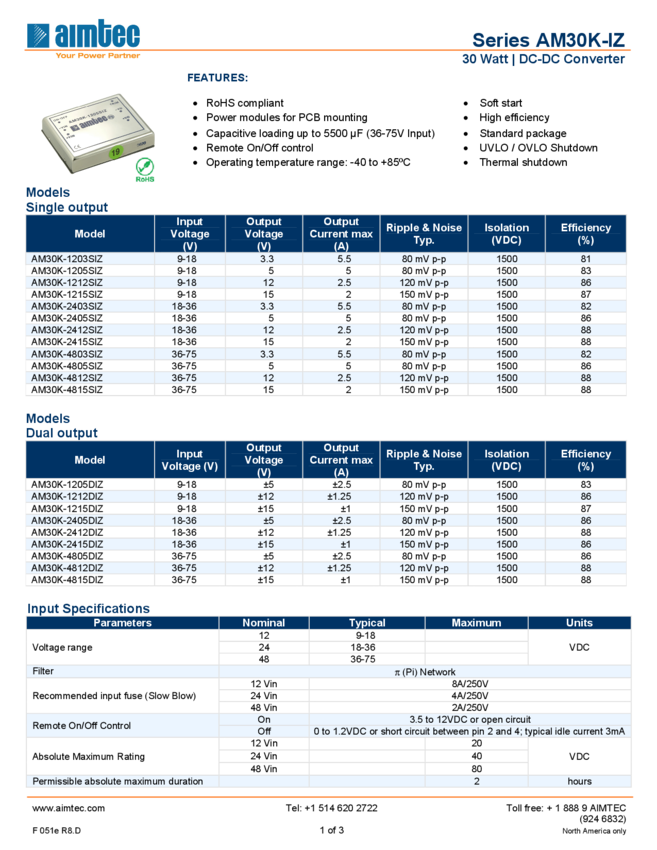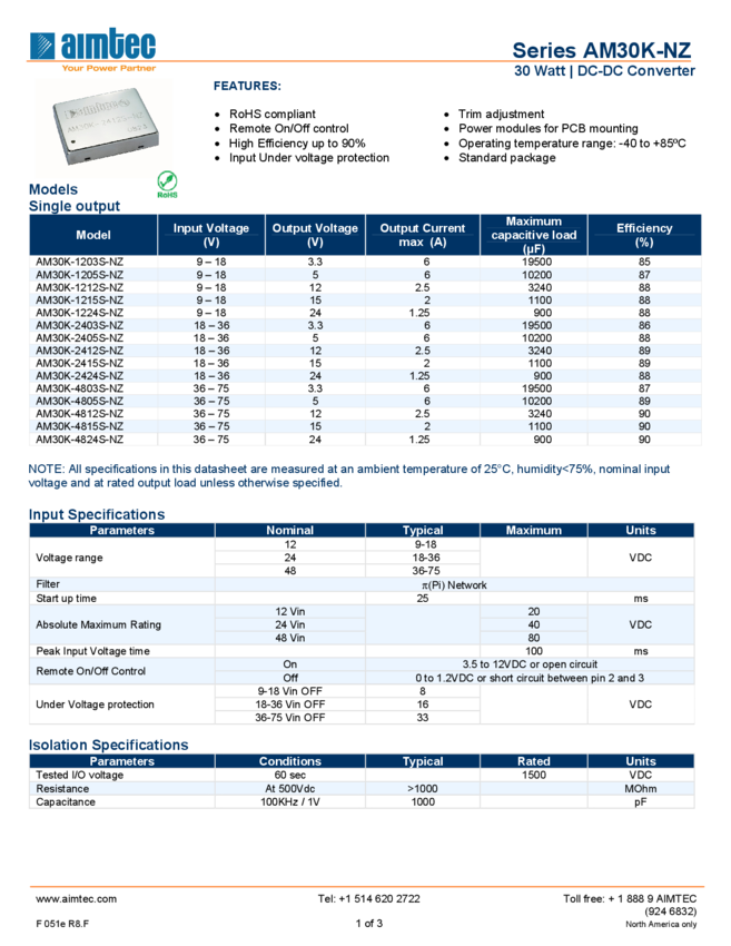 Module DC-DC 1-OUT 12V 2.5A 30W Bulk