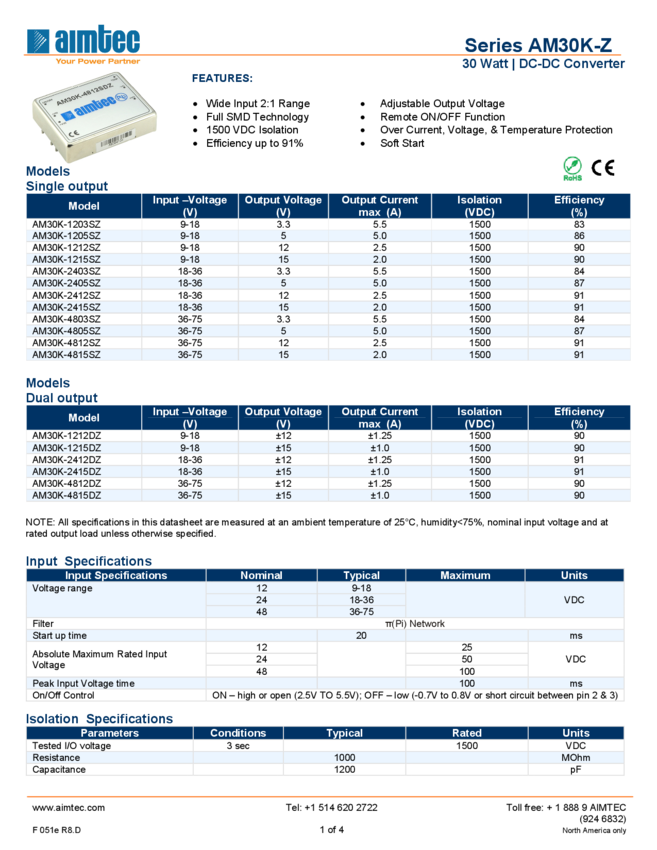 Module DC-DC 1-OUT 24V 1.25A 30W 6-Pin DIP