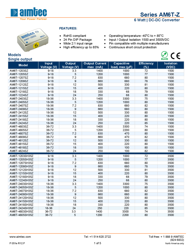 Module DC-DC Single-OUT 5V 1.2A 6W 7-Pin DIP Tube