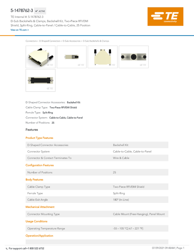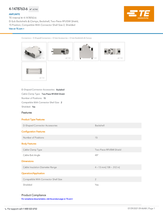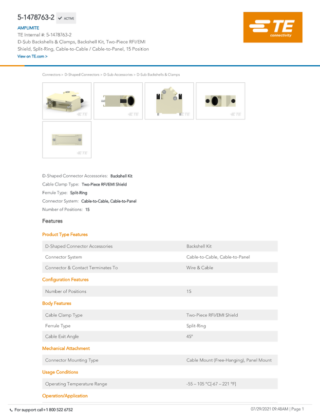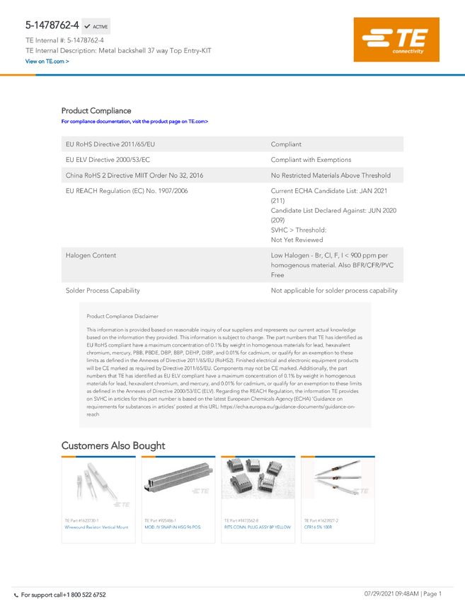 AMPLIMITE/AMPLIMATE & Other Special Products TE Connectivity 5-1478762-2 TE AMP AMPLIMITE/AMPLIMATE & Other Special Prod