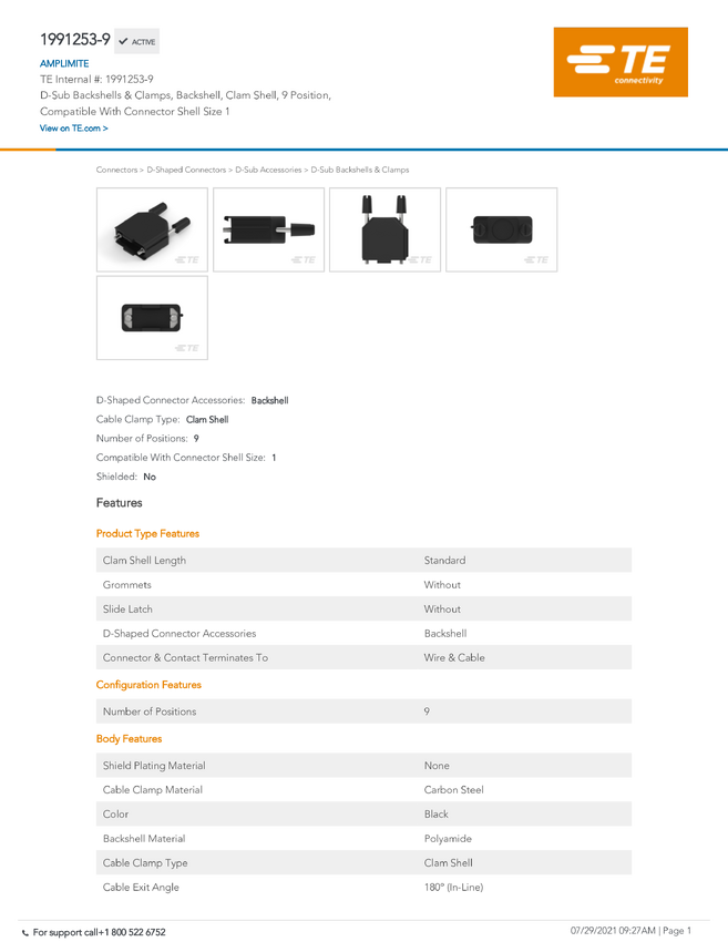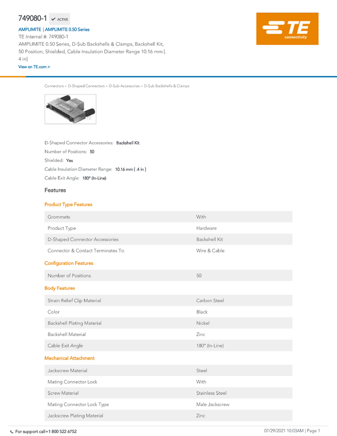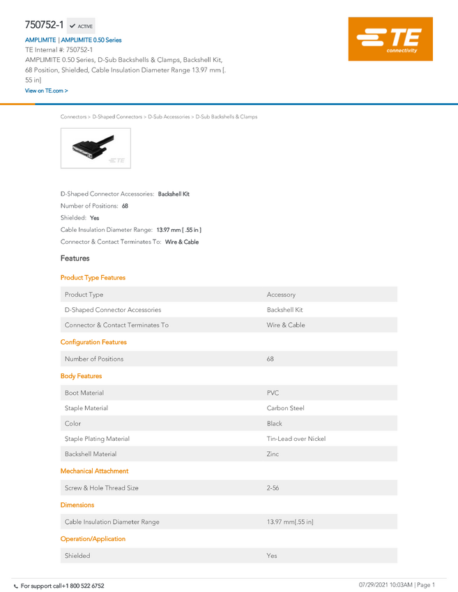 TE Connectivity 750752-1 TE AMP AMPLIMITE .050 Hardware/Backshells/Conn, 1 szt.