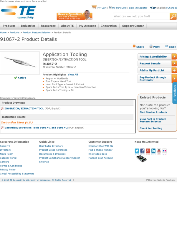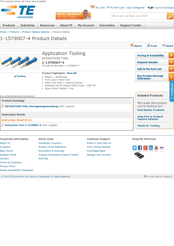 Extraction Tool For Use With:Amplimite HD 20 Connectors