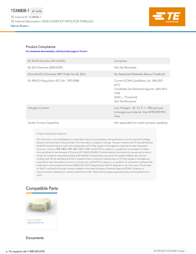 TE Connectivity TE AMP AMPLIMITE/AMPLIMATE & Other Special Products 1534808-1, 1